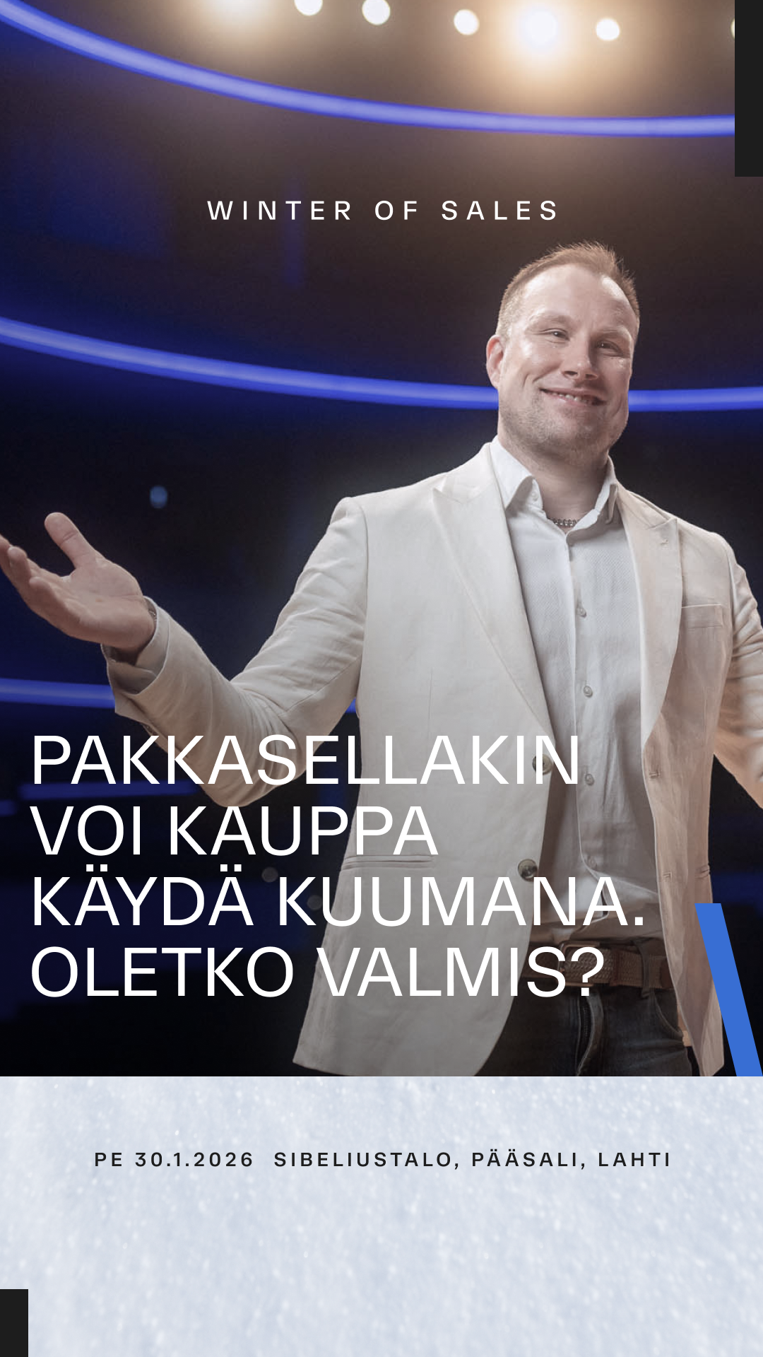 Tältä sivulta löydät valmiit kuvat, logot, copyt ja hashtag-suositukset tapahtuman markkinointiin ja jakamiseen. Kaikkien visujen koot on optimoitu niin, että ne toimivat yhtä hyvin Instagramissa, LinkedInissä ja Facebookissa — erillisiä formaatteja ei tarvitse valita.